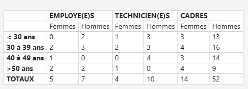 Sur l’année civile 2025 (période de référence de l’index), et compte tenu des règles de prise en compte de l’effectif, Tescan France part de la base suivante :